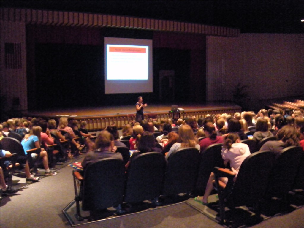 Posted in Appearances, Nice and Mean, Youth on 09/22/2010 08:42 pm by jessTo lure schooly types (parents, teachers, librarians) to a bookstore event last month, I raffled off a free author visit. As you may recall, a mom bringing a neighborhood full of spirited middle-school girls won the drawing, and on Monday, I got to make good on my promise at Scribner Middle School.