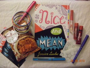 It’s pretty simple: come to a Nice and Mean event (I will read and dazzle you with my super-secret strategy for spritely Q&A), and if you are a parent, teacher or librarian, you can enter a drawing to win a classroom visit from me. I’ll talk about the process of becoming a writer, discuss the skills that are crucial to being an artist (revision and attention to detail–sound familiar, teachers?), and answer questions. (I can also read from the book, but often, the Q&A takes a while.)