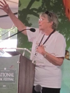 The main suggestion was to add humor, to make us like the character amid her whininess. But hello, the real problem was that the character should have been wanting things and going after them! Lois Lowry was big on this when I heard her speak at the National Festival of the Book (I really should have blogged about that experience-of-a-lifetime, but instead, I’ll just show you the photo):